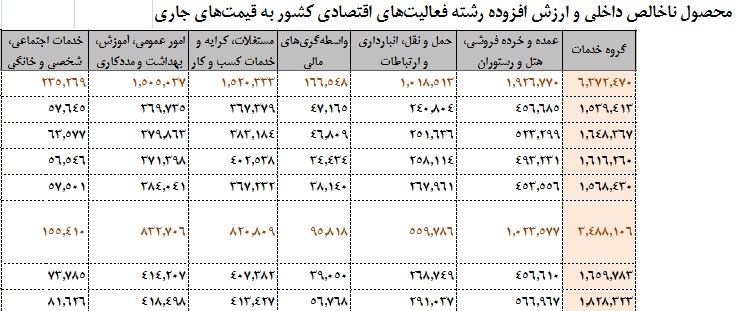 زیر بخشهای عمدهفروشی و خردهفروشی، هتل و رستوران، حملونقل و ارتباطات،